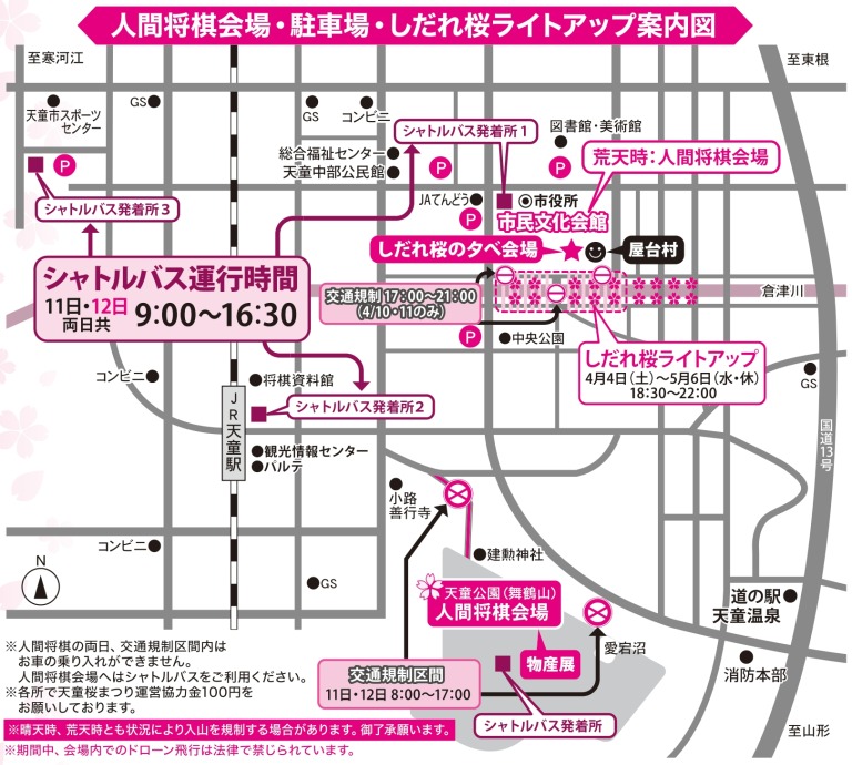 | お問合せ | 023-653-1680(天童桜まつり実行委員会) |