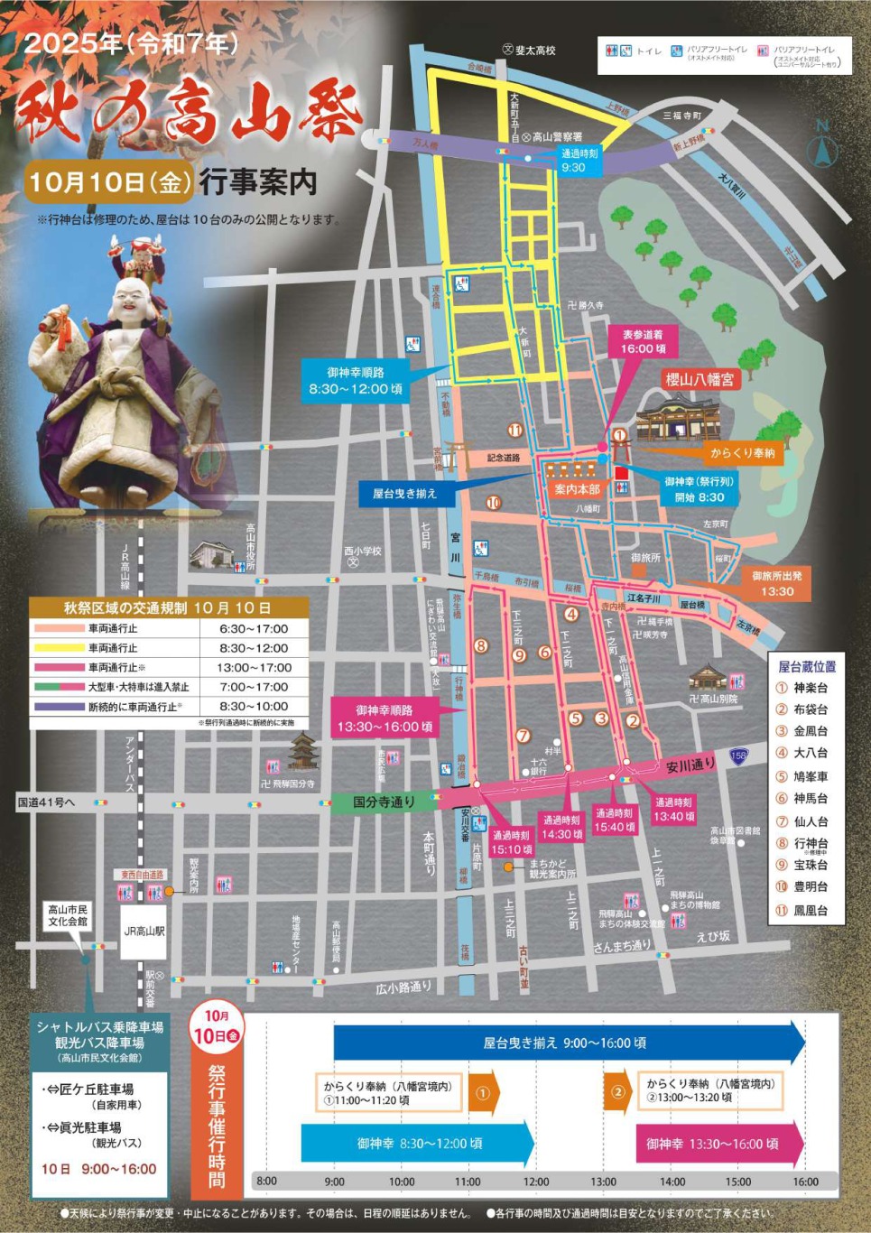 秋の高山祭が開催される2日間、会場周辺の広い範囲で交通規制がかかります。