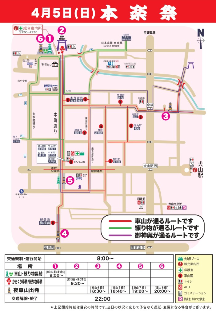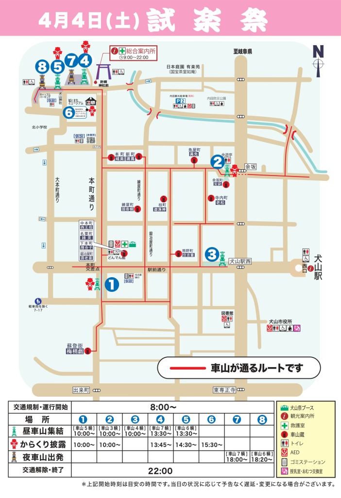 2026犬山祭の試楽祭の車山ルート図